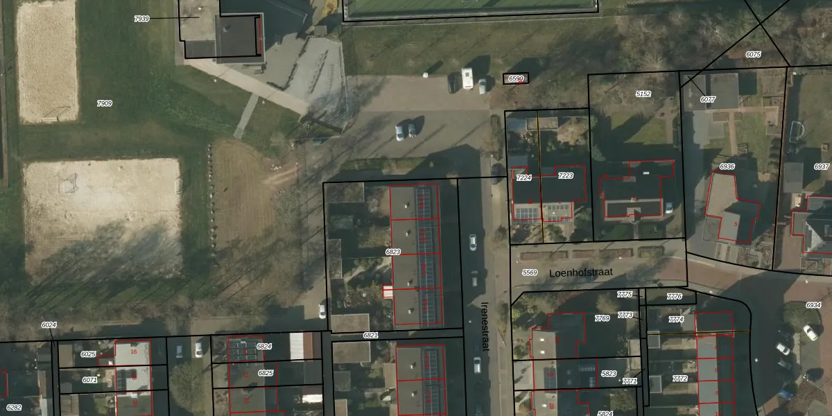 Irenestraat 59 is gelegen op kadastraal perceel HDN01G6823. Deze kadastrale aanduiding is uniek en wordt gebruikt door het Kadaster om eigendomsrechten en andere zakelijke rechten vast te leggen. Het perceel maakt onderdeel uit van de kadastrale gemeente Helden.