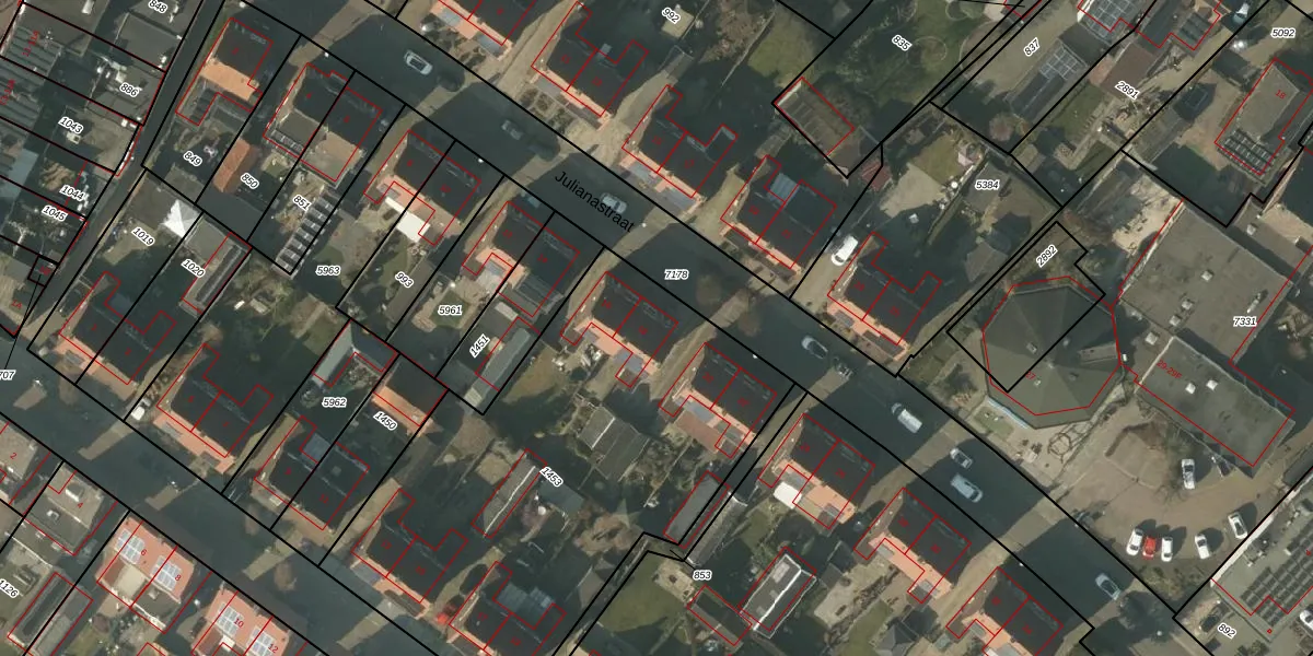 Julianastraat 18 is gelegen op kadastraal perceel HDN01G1453. Deze kadastrale aanduiding is uniek en wordt gebruikt door het Kadaster om eigendomsrechten en andere zakelijke rechten vast te leggen. Het perceel maakt onderdeel uit van de kadastrale gemeente Helden.