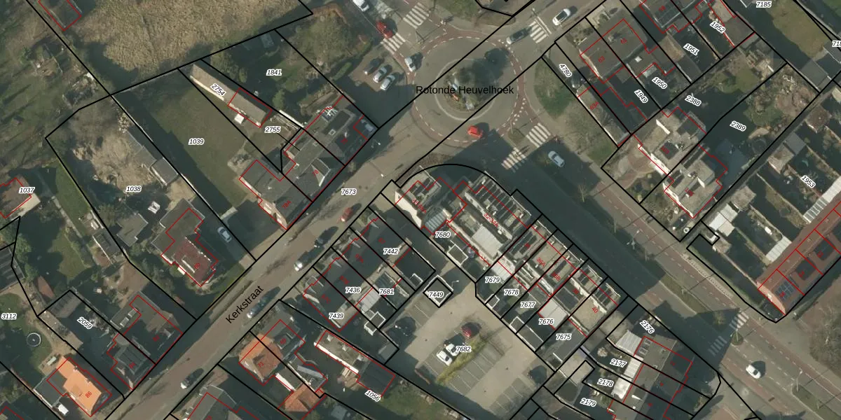 Kerkstraat 65 is gelegen op kadastraal perceel HDN01G7680. Deze kadastrale aanduiding is uniek en wordt gebruikt door het Kadaster om eigendomsrechten en andere zakelijke rechten vast te leggen. Het perceel maakt onderdeel uit van de kadastrale gemeente Helden.
