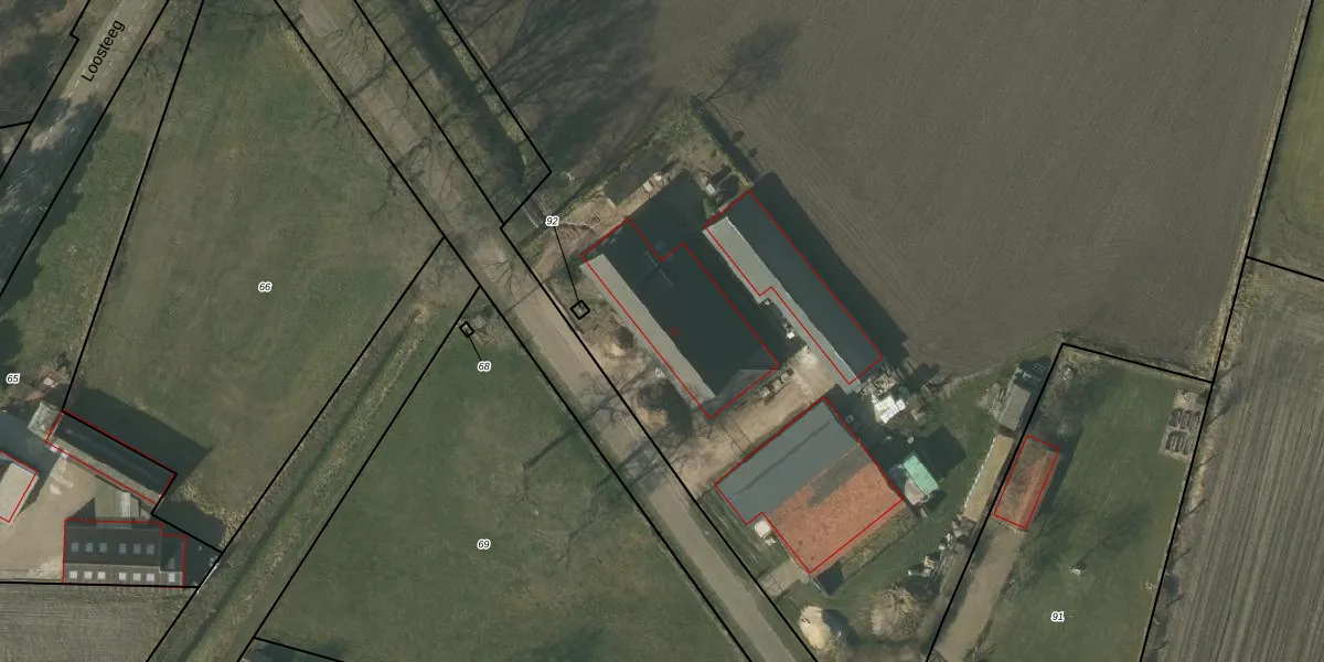 Het perceel waarop Loo 11 staat heeft een oppervlakte van 2,3 ha. Dit is een zeer groot perceel. De perceeloppervlakte wordt geregistreerd door het Kadaster. Gedetailleerde informatie over de maten van dit perceel kunt u vinden in het rapport Kadastrale kaart met maatvoering van Loo 11.