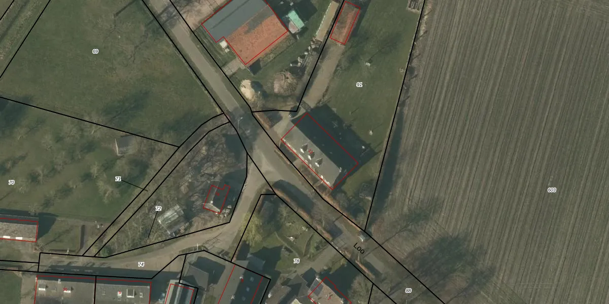 Het perceel waarop Loo 12 staat heeft een oppervlakte van 2383 m². Dit is een zeer groot perceel. De perceeloppervlakte wordt geregistreerd door het Kadaster. Gedetailleerde informatie over de maten van dit perceel kunt u vinden in het rapport Kadastrale kaart met maatvoering van Loo 12.