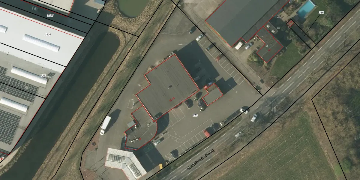 Maasbreeseweg 33 is gelegen op kadastraal perceel HDN01V713. Deze kadastrale aanduiding is uniek en wordt gebruikt door het Kadaster om eigendomsrechten en andere zakelijke rechten vast te leggen. Het perceel maakt onderdeel uit van de kadastrale gemeente Helden.