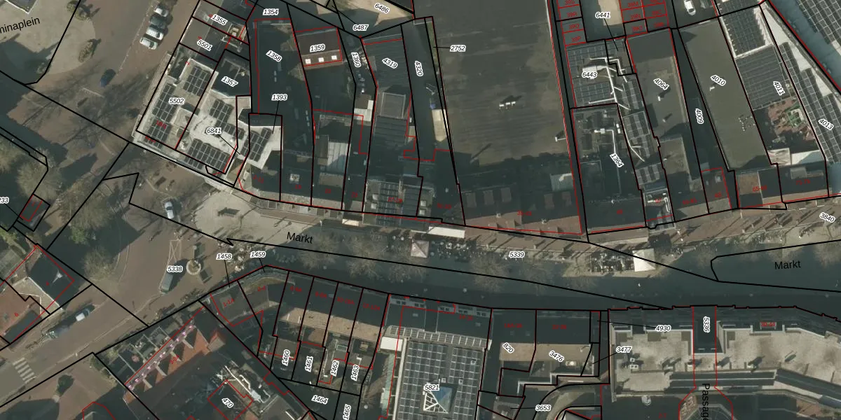 Het perceel waarop Markt 31 staat heeft een oppervlakte van 358 m². Dit is een groot perceel. De perceeloppervlakte wordt geregistreerd door het Kadaster. Gedetailleerde informatie over de maten van dit perceel kunt u vinden in het rapport Kadastrale kaart met maatvoering van Markt 31.