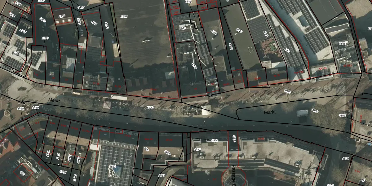 Het perceel waarop Markt 49 staat heeft een oppervlakte van 400 m². Dit is een groot perceel. De perceeloppervlakte wordt geregistreerd door het Kadaster. Gedetailleerde informatie over de maten van dit perceel kunt u vinden in het rapport Kadastrale kaart met maatvoering van Markt 49.