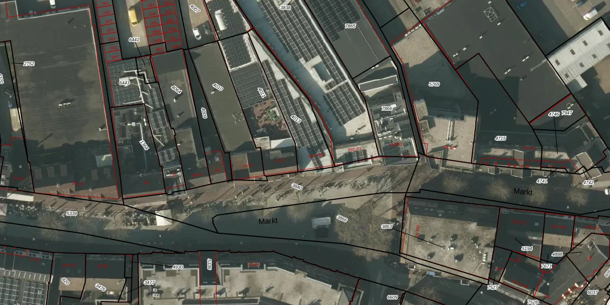 Het perceel waarop Markt 79-A staat heeft een oppervlakte van 392 m². Dit is een groot perceel. De perceeloppervlakte wordt geregistreerd door het Kadaster. Gedetailleerde informatie over de maten van dit perceel kunt u vinden in het rapport Kadastrale kaart met maatvoering van Markt 79-A.