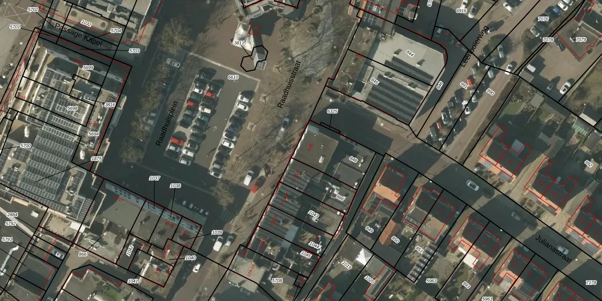 Raadhuisstraat 9-B is gelegen op kadastraal perceel HDN01G848. Deze kadastrale aanduiding is uniek en wordt gebruikt door het Kadaster om eigendomsrechten en andere zakelijke rechten vast te leggen. Het perceel maakt onderdeel uit van de kadastrale gemeente Helden.