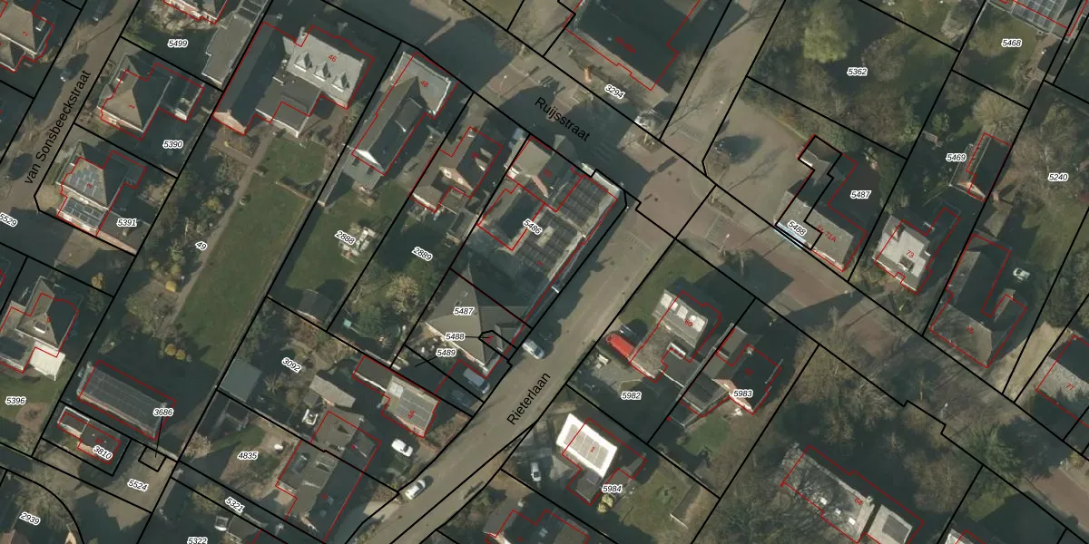 Het perceel waarop Rieterlaan 2 staat heeft een oppervlakte van 606 m². Dit is een groot perceel. De perceeloppervlakte wordt geregistreerd door het Kadaster. Gedetailleerde informatie over de maten van dit perceel kunt u vinden in het rapport Kadastrale kaart met maatvoering van Rieterlaan 2.