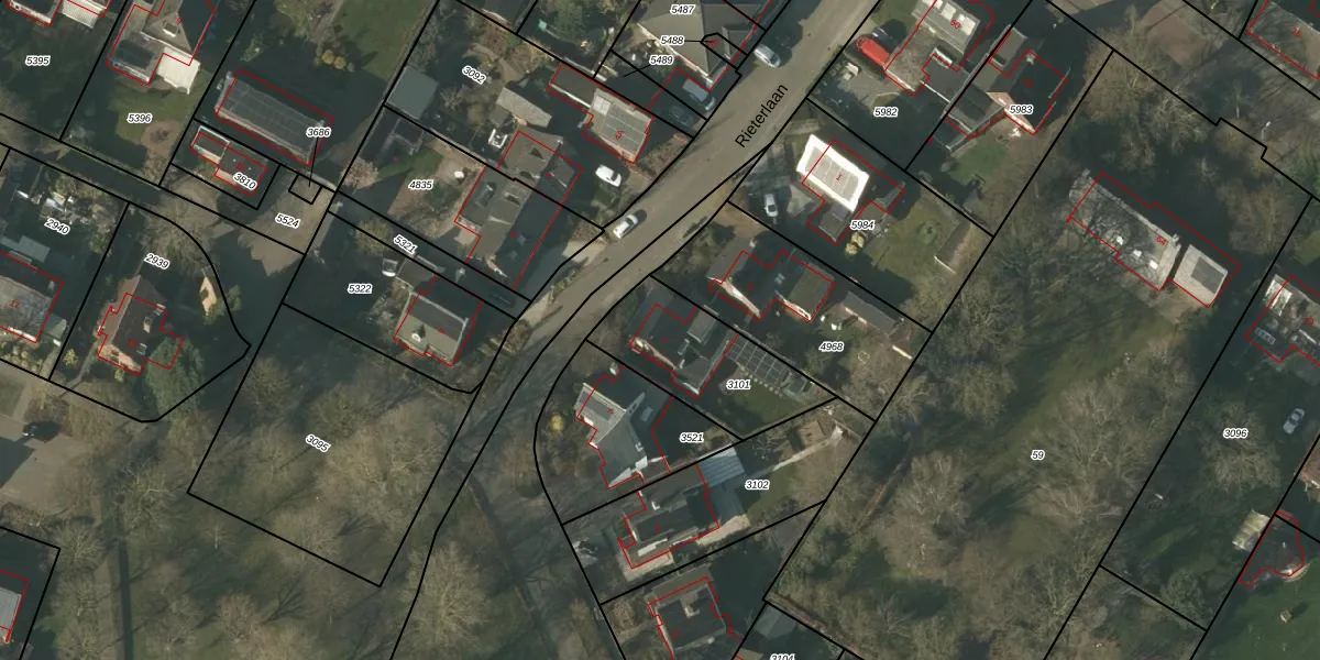 Rieterlaan 5 is gelegen op kadastraal perceel HDN01G3101. Deze kadastrale aanduiding is uniek en wordt gebruikt door het Kadaster om eigendomsrechten en andere zakelijke rechten vast te leggen. Het perceel maakt onderdeel uit van de kadastrale gemeente Helden.