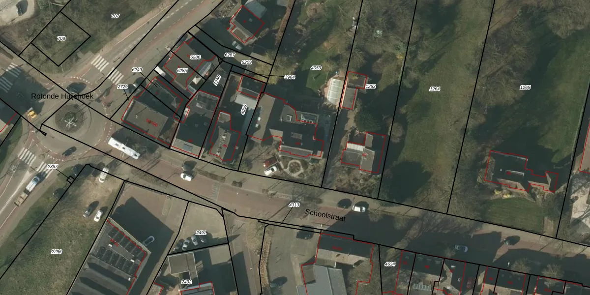 Het perceel waarop Schoolstraat 44 staat heeft een oppervlakte van 1912 m². Dit is een zeer groot perceel. De perceeloppervlakte wordt geregistreerd door het Kadaster. Gedetailleerde informatie over de maten van dit perceel kunt u vinden in het rapport Kadastrale kaart met maatvoering van Schoolstraat 44.