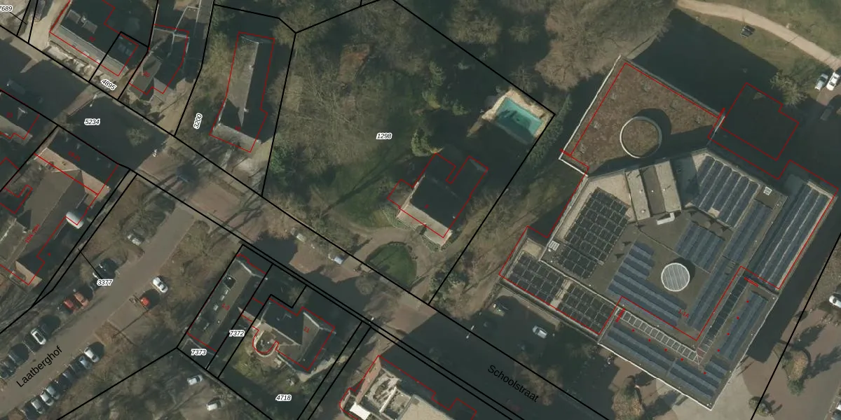 Het perceel waarop Schoolstraat 8 staat heeft een oppervlakte van 3060 m². Dit is een zeer groot perceel. De perceeloppervlakte wordt geregistreerd door het Kadaster. Gedetailleerde informatie over de maten van dit perceel kunt u vinden in het rapport Kadastrale kaart met maatvoering van Schoolstraat 8.