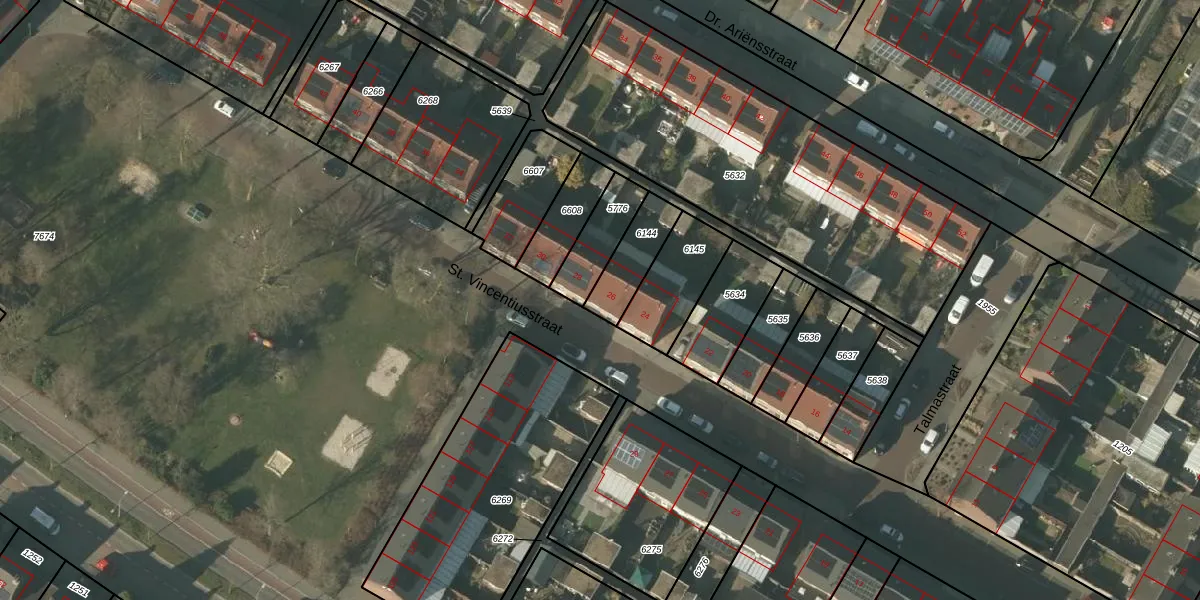 St. Vincentiusstraat 26 is gelegen op kadastraal perceel HDN01G6144. Deze kadastrale aanduiding is uniek en wordt gebruikt door het Kadaster om eigendomsrechten en andere zakelijke rechten vast te leggen. Het perceel maakt onderdeel uit van de kadastrale gemeente Helden.