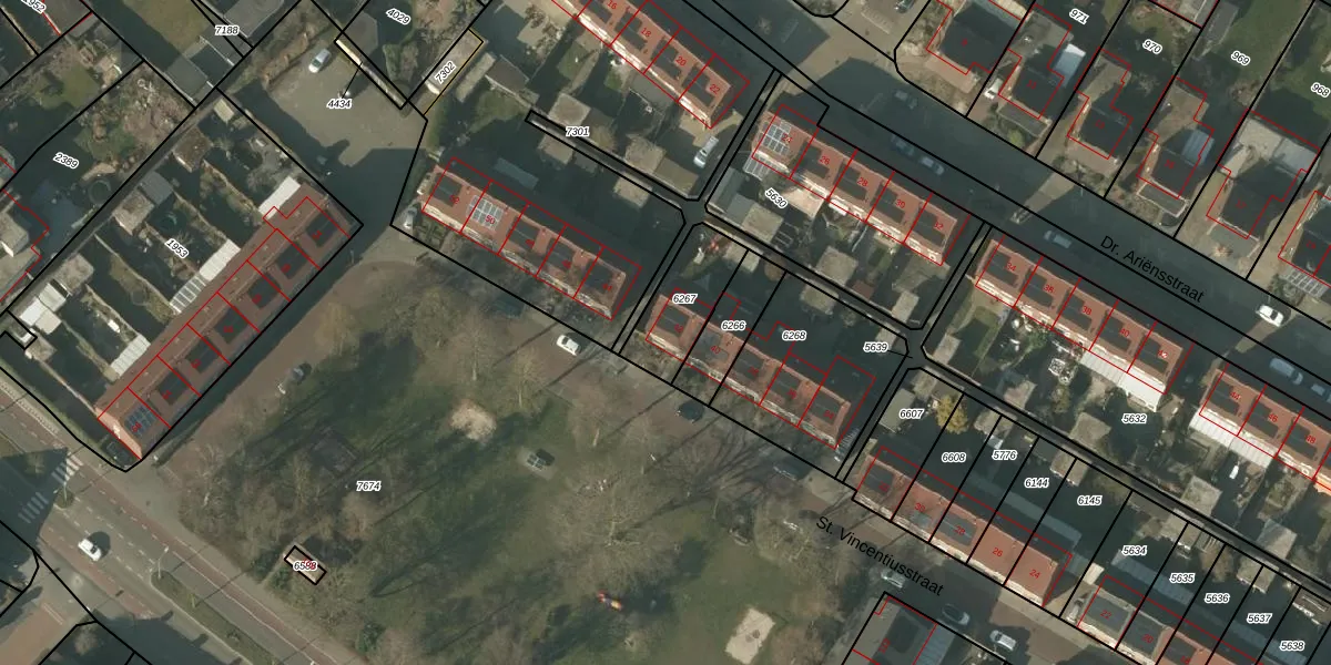 St. Vincentiusstraat 42 is gelegen op kadastraal perceel HDN01G6267. Deze kadastrale aanduiding is uniek en wordt gebruikt door het Kadaster om eigendomsrechten en andere zakelijke rechten vast te leggen. Het perceel maakt onderdeel uit van de kadastrale gemeente Helden.