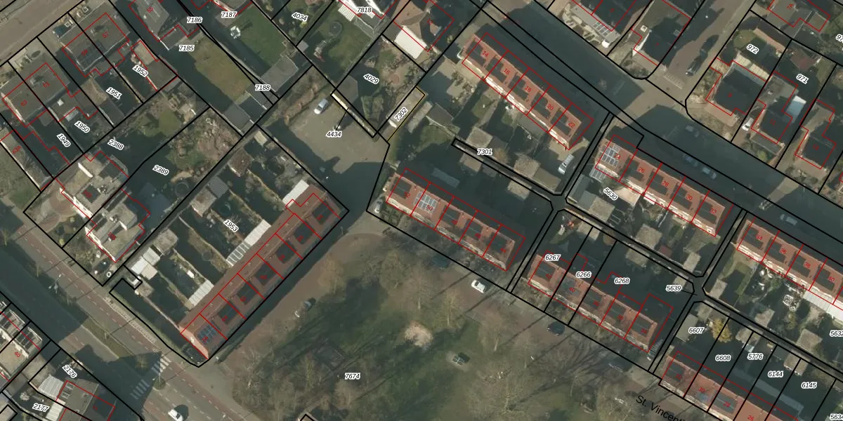 St. Vincentiusstraat 50 is gelegen op kadastraal perceel HDN01G7301. Deze kadastrale aanduiding is uniek en wordt gebruikt door het Kadaster om eigendomsrechten en andere zakelijke rechten vast te leggen. Het perceel maakt onderdeel uit van de kadastrale gemeente Helden.