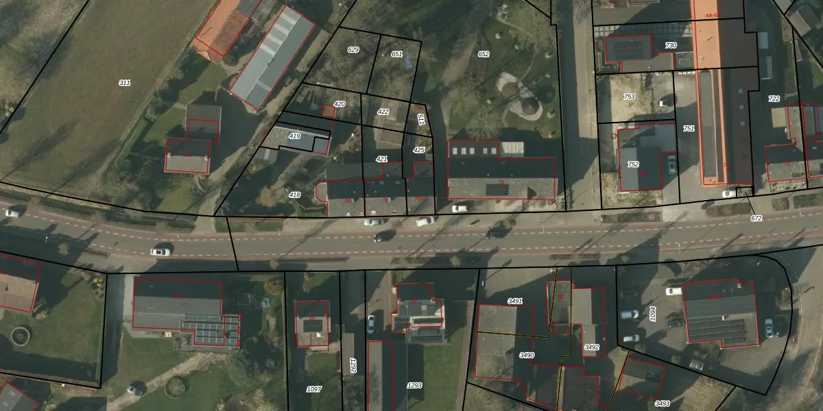 Gebruik de zoekbalk of klik op een perceel voor informatie over de adressen binnen dit perceel.