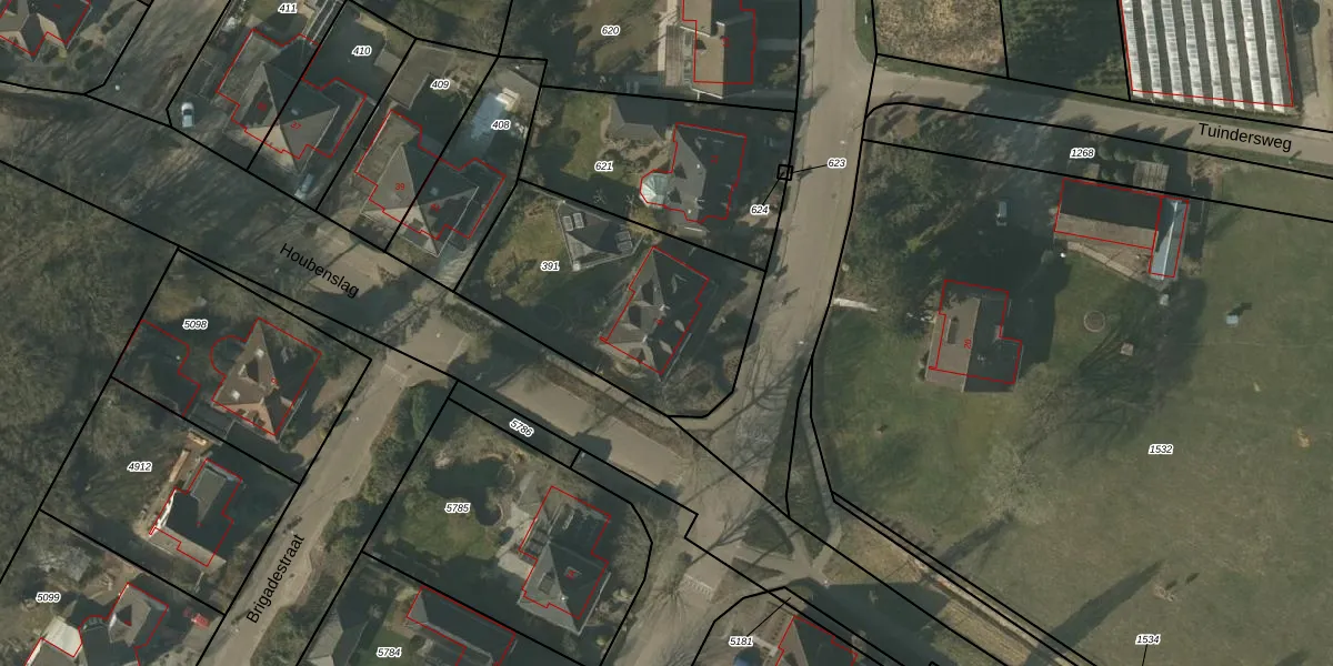 Tuindersweg 9 is gelegen op kadastraal perceel HDN01V391. Deze kadastrale aanduiding is uniek en wordt gebruikt door het Kadaster om eigendomsrechten en andere zakelijke rechten vast te leggen. Het perceel maakt onderdeel uit van de kadastrale gemeente Helden.