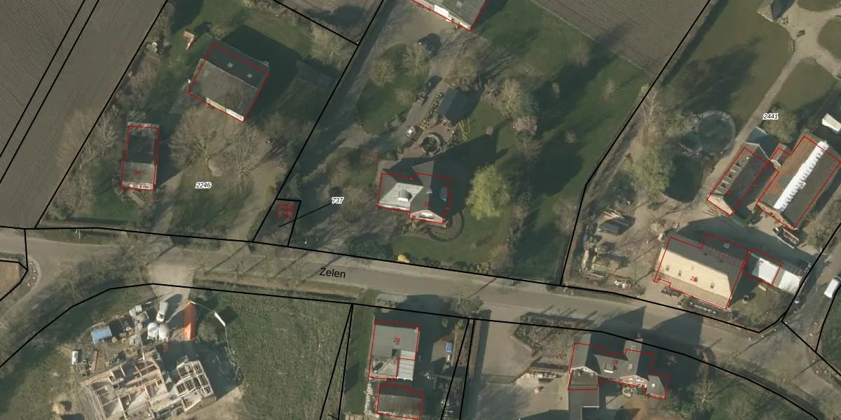 Het perceel waarop Zelen 32 staat heeft een oppervlakte van 3,0 ha. Dit is een zeer groot perceel. De perceeloppervlakte wordt geregistreerd door het Kadaster. Gedetailleerde informatie over de maten van dit perceel kunt u vinden in het rapport Kadastrale kaart met maatvoering van Zelen 32.