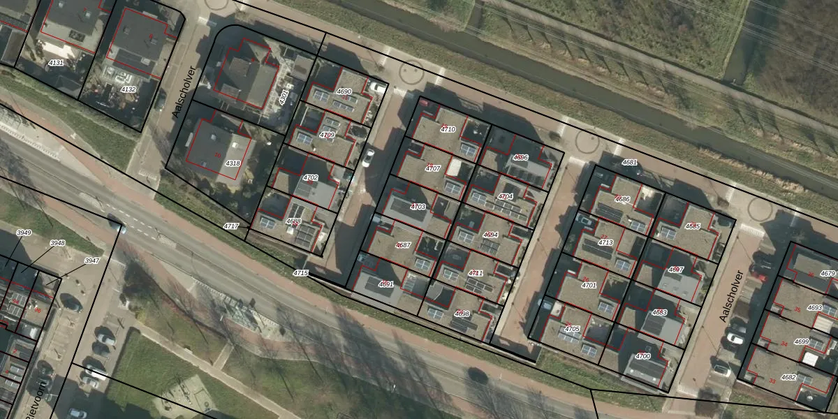 Het perceel waarop Aalscholver 17 staat heeft een oppervlakte van 180 m². Dit is een middelgroot perceel. De perceeloppervlakte wordt geregistreerd door het Kadaster. Gedetailleerde informatie over de maten van dit perceel kunt u vinden in het rapport Kadastrale kaart met maatvoering van Aalscholver 17.