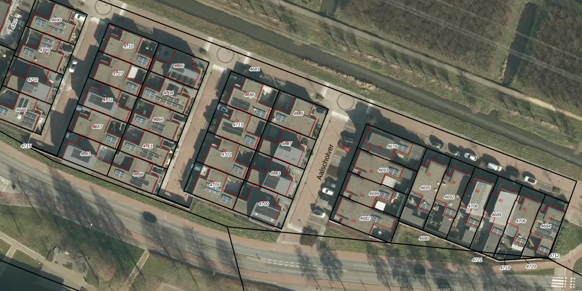 Het perceel waarop Aalscholver 30 staat heeft een oppervlakte van 197 m². Dit is een middelgroot perceel. De perceeloppervlakte wordt geregistreerd door het Kadaster. Gedetailleerde informatie over de maten van dit perceel kunt u vinden in het rapport Kadastrale kaart met maatvoering van Aalscholver 30.