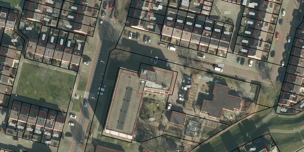 Het perceel waarop Albert Schweitzerstraat 145 staat heeft een oppervlakte van 2405 m². Dit is een zeer groot perceel. De perceeloppervlakte wordt geregistreerd door het Kadaster. Gedetailleerde informatie over de maten van dit perceel kunt u vinden in het rapport Kadastrale kaart met maatvoering van Albert Schweitzerstraat 145.