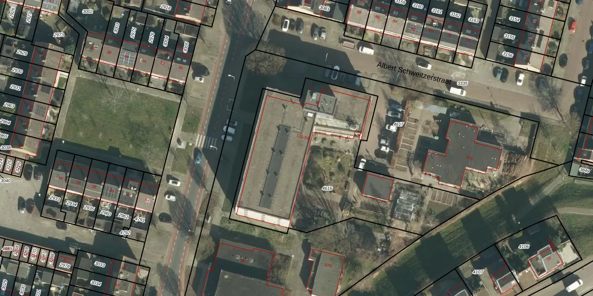 Het perceel waarop Albert Schweitzerstraat 183 staat heeft een oppervlakte van 2405 m². Dit is een zeer groot perceel. De perceeloppervlakte wordt geregistreerd door het Kadaster. Gedetailleerde informatie over de maten van dit perceel kunt u vinden in het rapport Kadastrale kaart met maatvoering van Albert Schweitzerstraat 183.