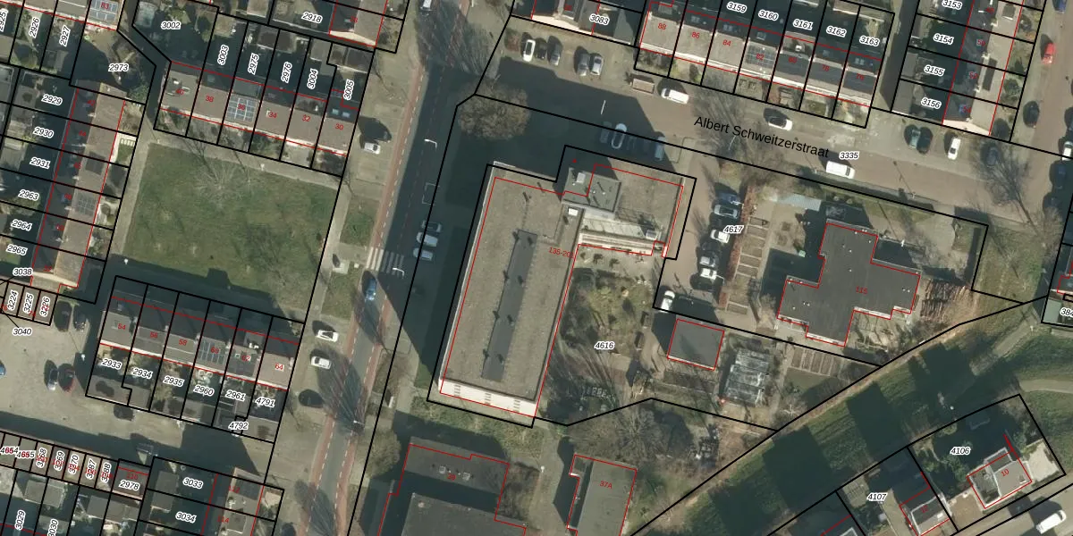 Het perceel waarop Albert Schweitzerstraat 199 staat heeft een oppervlakte van 2405 m². Dit is een zeer groot perceel. De perceeloppervlakte wordt geregistreerd door het Kadaster. Gedetailleerde informatie over de maten van dit perceel kunt u vinden in het rapport Kadastrale kaart met maatvoering van Albert Schweitzerstraat 199.