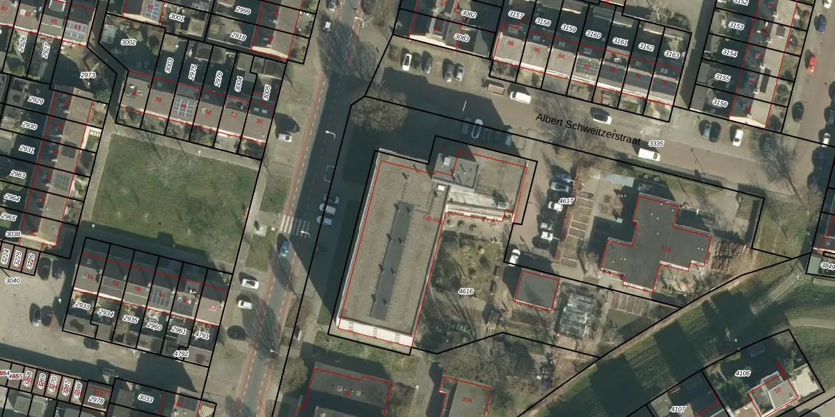 Het perceel waarop Albert Schweitzerstraat 201 staat heeft een oppervlakte van 2405 m². Dit is een zeer groot perceel. De perceeloppervlakte wordt geregistreerd door het Kadaster. Gedetailleerde informatie over de maten van dit perceel kunt u vinden in het rapport Kadastrale kaart met maatvoering van Albert Schweitzerstraat 201.