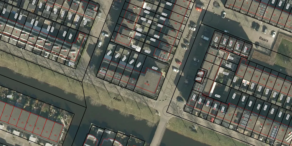 Het perceel waarop Alver 25 staat heeft een oppervlakte van 450 m². Dit is een groot perceel. De perceeloppervlakte wordt geregistreerd door het Kadaster. Gedetailleerde informatie over de maten van dit perceel kunt u vinden in het rapport Kadastrale kaart met maatvoering van Alver 25.