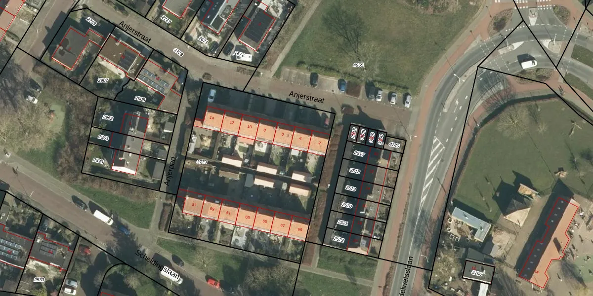 Het perceel waarop Anjerstraat 4 staat heeft een oppervlakte van 2385 m². Dit is een zeer groot perceel. De perceeloppervlakte wordt geregistreerd door het Kadaster. Gedetailleerde informatie over de maten van dit perceel kunt u vinden in het rapport Kadastrale kaart met maatvoering van Anjerstraat 4.