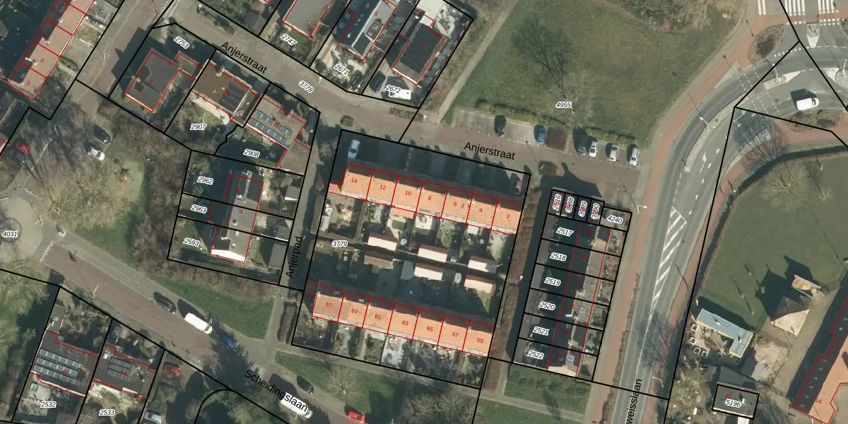 Het perceel waarop Anjerstraat 8 staat heeft een oppervlakte van 2385 m². Dit is een zeer groot perceel. De perceeloppervlakte wordt geregistreerd door het Kadaster. Gedetailleerde informatie over de maten van dit perceel kunt u vinden in het rapport Kadastrale kaart met maatvoering van Anjerstraat 8.
