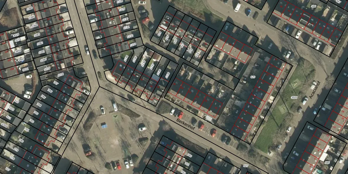 Het perceel waarop Berkenhof 36 staat heeft een oppervlakte van 2531 m². Dit is een zeer groot perceel. De perceeloppervlakte wordt geregistreerd door het Kadaster. Gedetailleerde informatie over de maten van dit perceel kunt u vinden in het rapport Kadastrale kaart met maatvoering van Berkenhof 36.