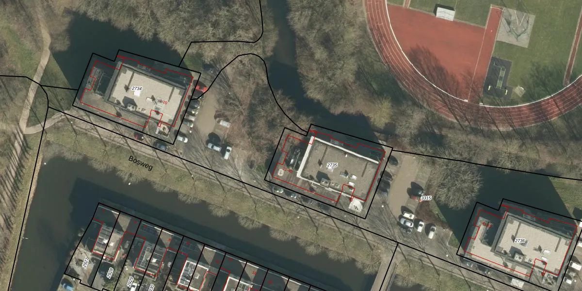 Het perceel waarop Bosweg 34 staat heeft een oppervlakte van 880 m². Dit is een groot perceel. De perceeloppervlakte wordt geregistreerd door het Kadaster. Gedetailleerde informatie over de maten van dit perceel kunt u vinden in het rapport Kadastrale kaart met maatvoering van Bosweg 34.