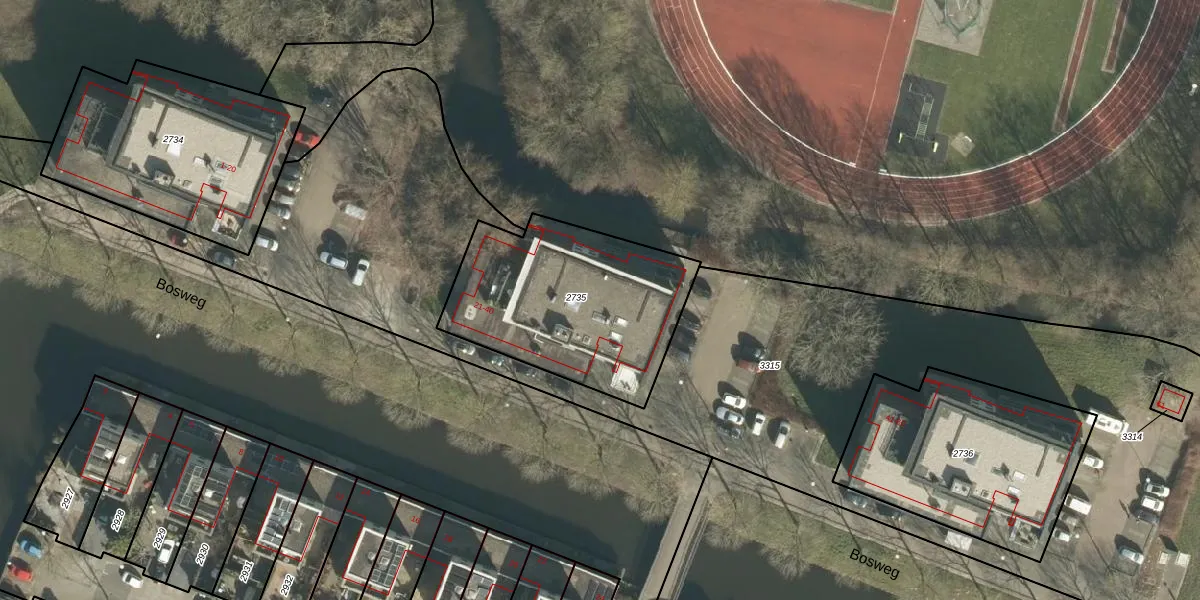 Het perceel waarop Bosweg 37 staat heeft een oppervlakte van 880 m². Dit is een groot perceel. De perceeloppervlakte wordt geregistreerd door het Kadaster. Gedetailleerde informatie over de maten van dit perceel kunt u vinden in het rapport Kadastrale kaart met maatvoering van Bosweg 37.