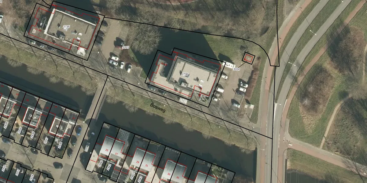 Het perceel waarop Bosweg 43 staat heeft een oppervlakte van 880 m². Dit is een groot perceel. De perceeloppervlakte wordt geregistreerd door het Kadaster. Gedetailleerde informatie over de maten van dit perceel kunt u vinden in het rapport Kadastrale kaart met maatvoering van Bosweg 43.