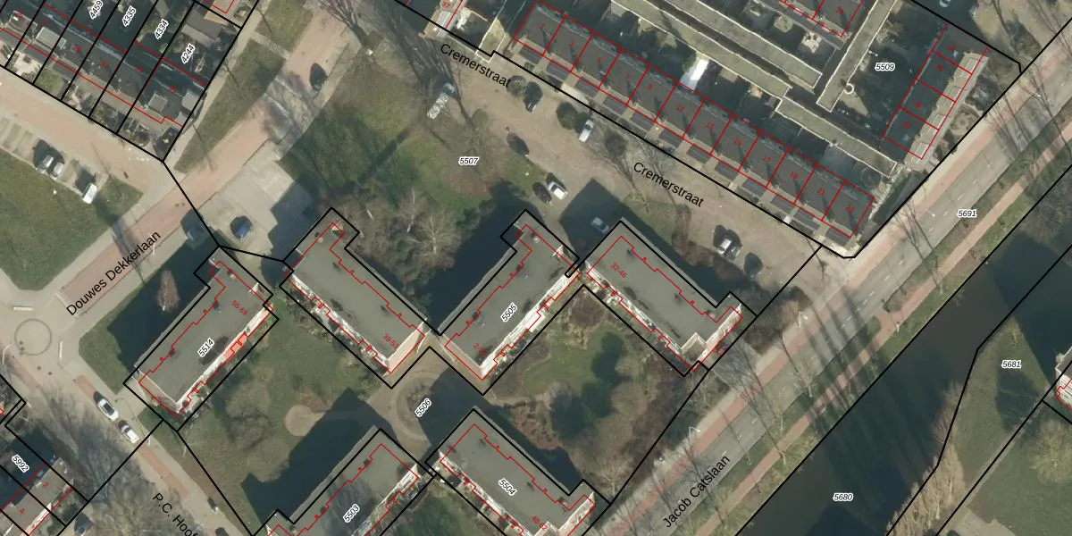 Het perceel waarop Cremerstraat 2 staat heeft een oppervlakte van 1275 m². Dit is een zeer groot perceel. De perceeloppervlakte wordt geregistreerd door het Kadaster. Gedetailleerde informatie over de maten van dit perceel kunt u vinden in het rapport Kadastrale kaart met maatvoering van Cremerstraat 2.