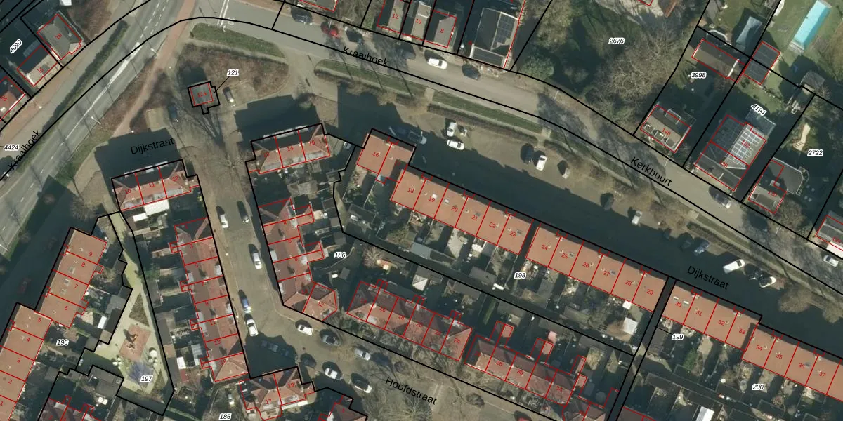 Het perceel waarop Dijkstraat 19 staat heeft een oppervlakte van 1707 m². Dit is een zeer groot perceel. De perceeloppervlakte wordt geregistreerd door het Kadaster. Gedetailleerde informatie over de maten van dit perceel kunt u vinden in het rapport Kadastrale kaart met maatvoering van Dijkstraat 19.