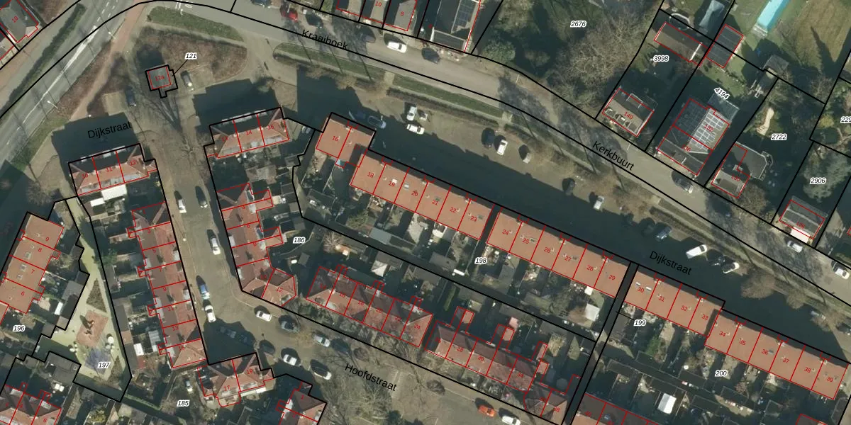 Het perceel waarop Dijkstraat 21 staat heeft een oppervlakte van 1707 m². Dit is een zeer groot perceel. De perceeloppervlakte wordt geregistreerd door het Kadaster. Gedetailleerde informatie over de maten van dit perceel kunt u vinden in het rapport Kadastrale kaart met maatvoering van Dijkstraat 21.
