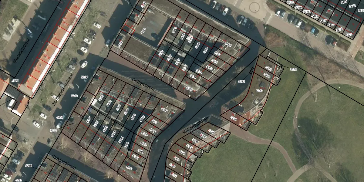 Het perceel waarop Dotterbloem 9 staat heeft een oppervlakte van 121 m². Dit is een middelgroot perceel. De perceeloppervlakte wordt geregistreerd door het Kadaster. Gedetailleerde informatie over de maten van dit perceel kunt u vinden in het rapport Kadastrale kaart met maatvoering van Dotterbloem 9.