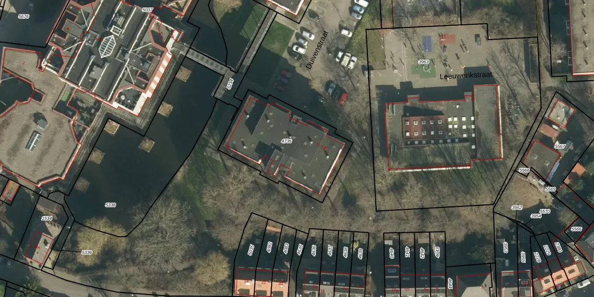 Het perceel waarop Duivenstraat 111 staat heeft een oppervlakte van 946 m². Dit is een groot perceel. De perceeloppervlakte wordt geregistreerd door het Kadaster. Gedetailleerde informatie over de maten van dit perceel kunt u vinden in het rapport Kadastrale kaart met maatvoering van Duivenstraat 111.