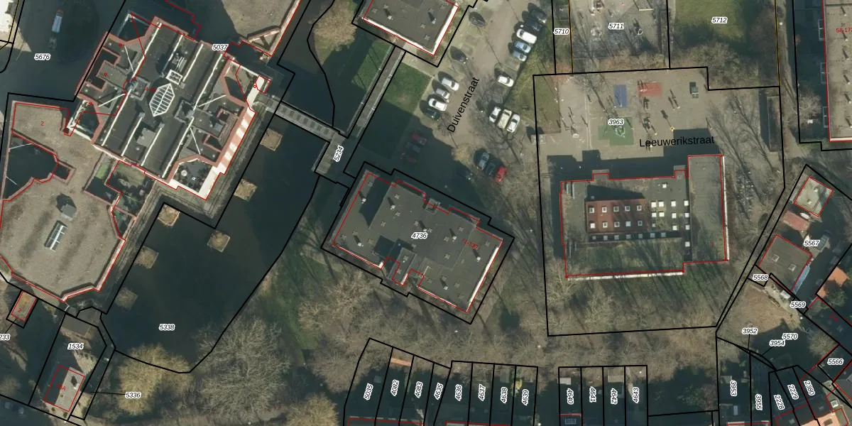 Het perceel waarop Duivenstraat 137 staat heeft een oppervlakte van 946 m². Dit is een groot perceel. De perceeloppervlakte wordt geregistreerd door het Kadaster. Gedetailleerde informatie over de maten van dit perceel kunt u vinden in het rapport Kadastrale kaart met maatvoering van Duivenstraat 137.