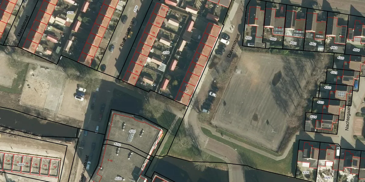 Het perceel waarop Duivenstraat 14 staat heeft een oppervlakte van 2680 m². Dit is een zeer groot perceel. De perceeloppervlakte wordt geregistreerd door het Kadaster. Gedetailleerde informatie over de maten van dit perceel kunt u vinden in het rapport Kadastrale kaart met maatvoering van Duivenstraat 14.