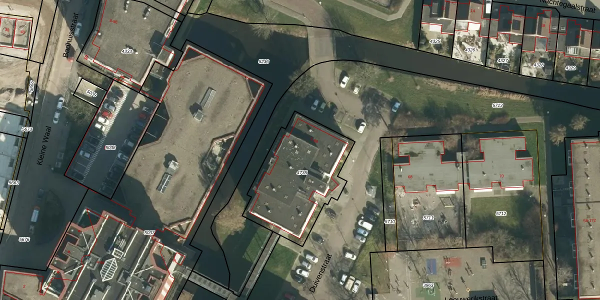 Het perceel waarop Duivenstraat 53 staat heeft een oppervlakte van 963 m². Dit is een groot perceel. De perceeloppervlakte wordt geregistreerd door het Kadaster. Gedetailleerde informatie over de maten van dit perceel kunt u vinden in het rapport Kadastrale kaart met maatvoering van Duivenstraat 53.