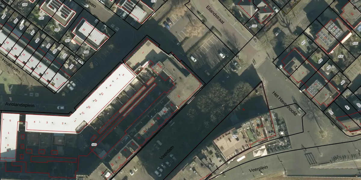Het perceel waarop het adres ligt is PPD00-D-500. De afkorting 'PPD00' staat voor kadastrale gemeente Papendrecht. Het perceel is met 5522 m² relatief groot. Het gemiddelde ligt in de kadastrale gemeente Papendrecht op 960,82 m². De grootste perceeloppervlakte in de kadastrale gemeente is 21,7 ha. De kleinste oppervlakte bedraagt 0 m². Er zijn 68 adressen aanwezig op het perceel. De huidige grenzen van het perceel zijn digitaal in de Basisregistratie Kadaster (BRK) geregistreerd op 17-07-2009.