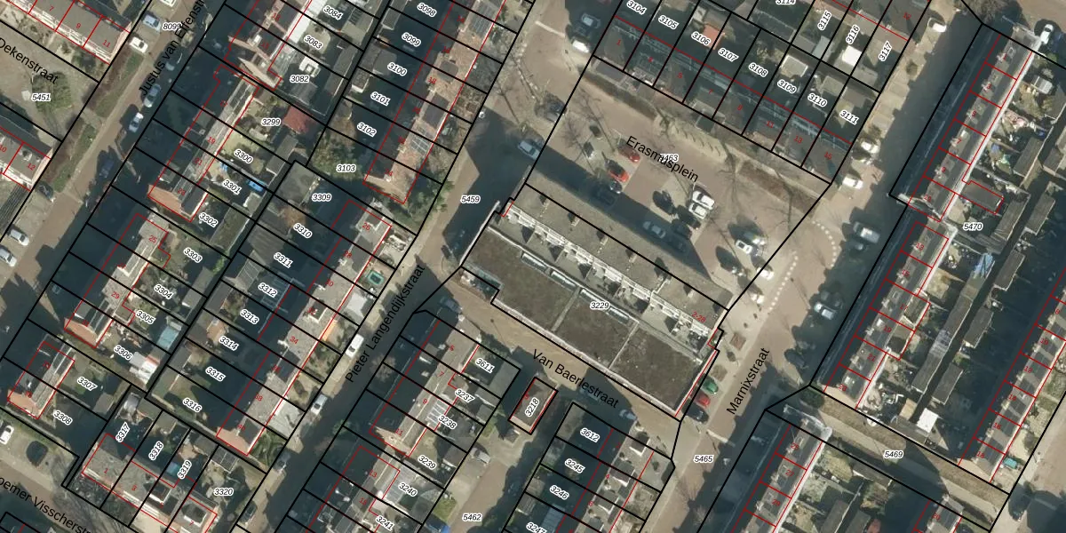 Het perceel waarop Erasmusplein 8 staat heeft een oppervlakte van 1070 m². Dit is een zeer groot perceel. De perceeloppervlakte wordt geregistreerd door het Kadaster. Gedetailleerde informatie over de maten van dit perceel kunt u vinden in het rapport Kadastrale kaart met maatvoering van Erasmusplein 8.