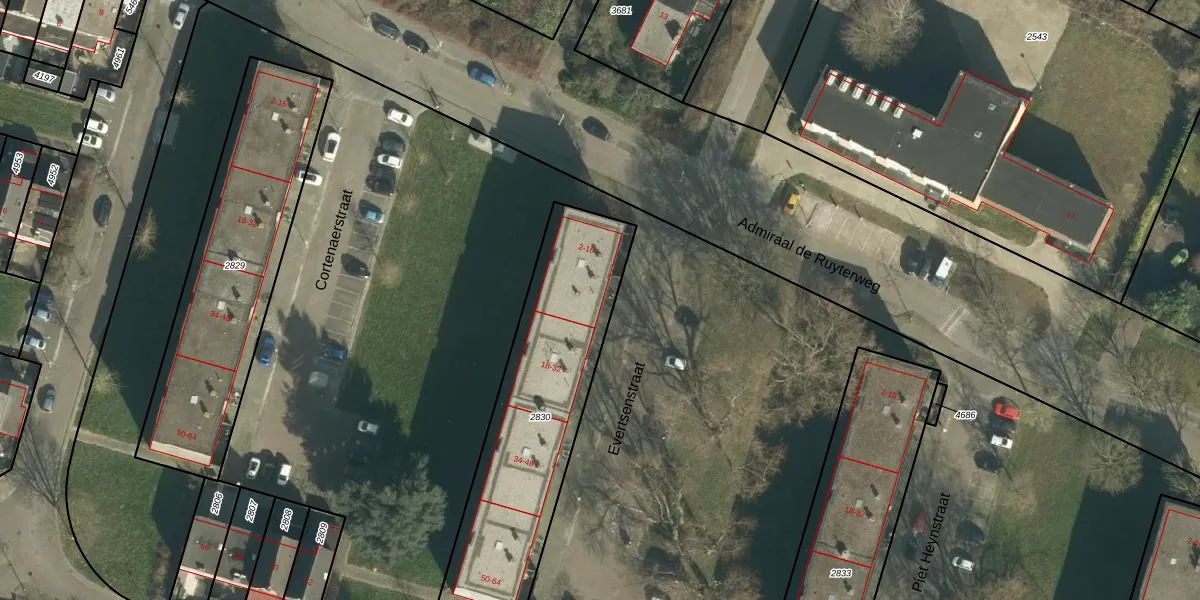 Het perceel waarop Evertsenstraat 16 staat heeft een oppervlakte van 997 m². Dit is een groot perceel. De perceeloppervlakte wordt geregistreerd door het Kadaster. Gedetailleerde informatie over de maten van dit perceel kunt u vinden in het rapport Kadastrale kaart met maatvoering van Evertsenstraat 16.