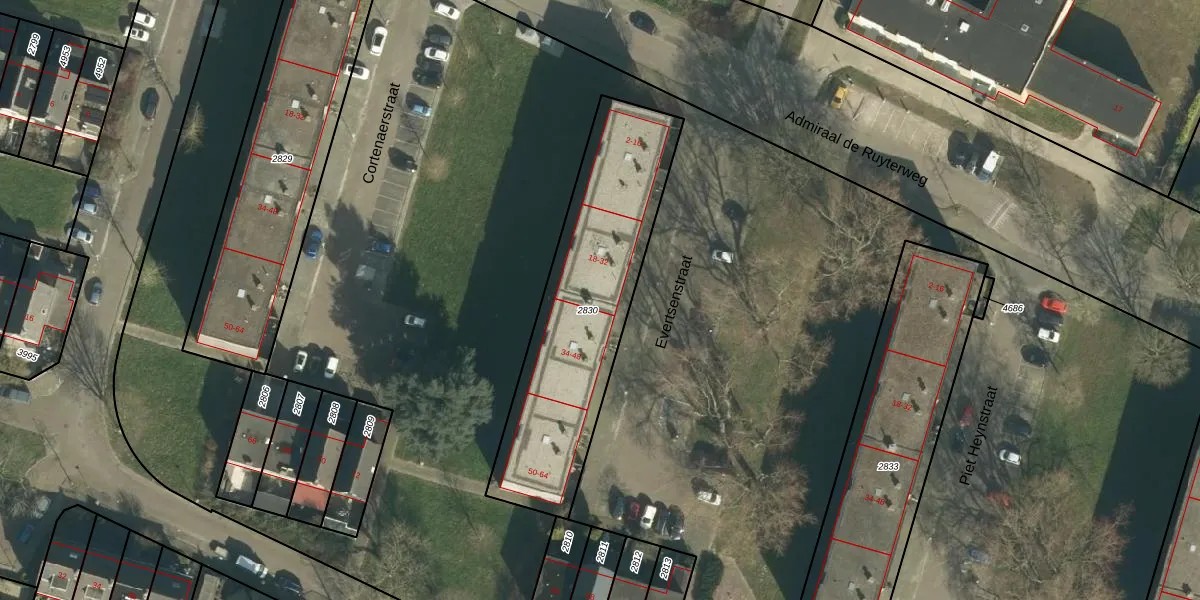 Het perceel waarop Evertsenstraat 22 staat heeft een oppervlakte van 997 m². Dit is een groot perceel. De perceeloppervlakte wordt geregistreerd door het Kadaster. Gedetailleerde informatie over de maten van dit perceel kunt u vinden in het rapport Kadastrale kaart met maatvoering van Evertsenstraat 22.