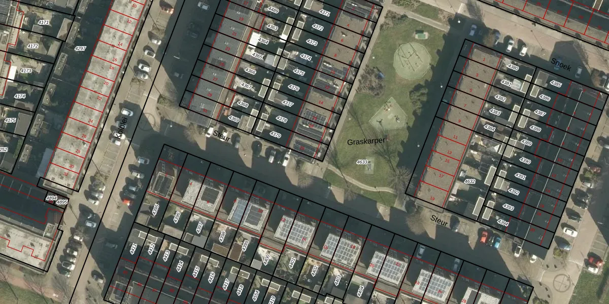 Gebruik de zoekbalk of klik op een perceel voor informatie over de adressen binnen dit perceel.