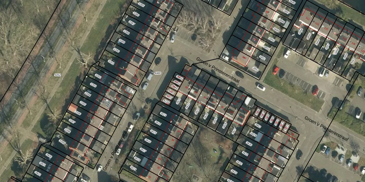 Het perceel waarop Groen v Prinstererstraat 58 staat heeft een oppervlakte van 175 m². Dit is een middelgroot perceel. De perceeloppervlakte wordt geregistreerd door het Kadaster. Gedetailleerde informatie over de maten van dit perceel kunt u vinden in het rapport Kadastrale kaart met maatvoering van Groen v Prinstererstraat 58.