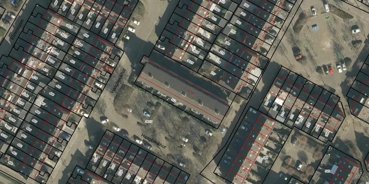 Het perceel waarop Haagbeukhof 110 staat heeft een oppervlakte van 1133 m². Dit is een zeer groot perceel. De perceeloppervlakte wordt geregistreerd door het Kadaster. Gedetailleerde informatie over de maten van dit perceel kunt u vinden in het rapport Kadastrale kaart met maatvoering van Haagbeukhof 110.