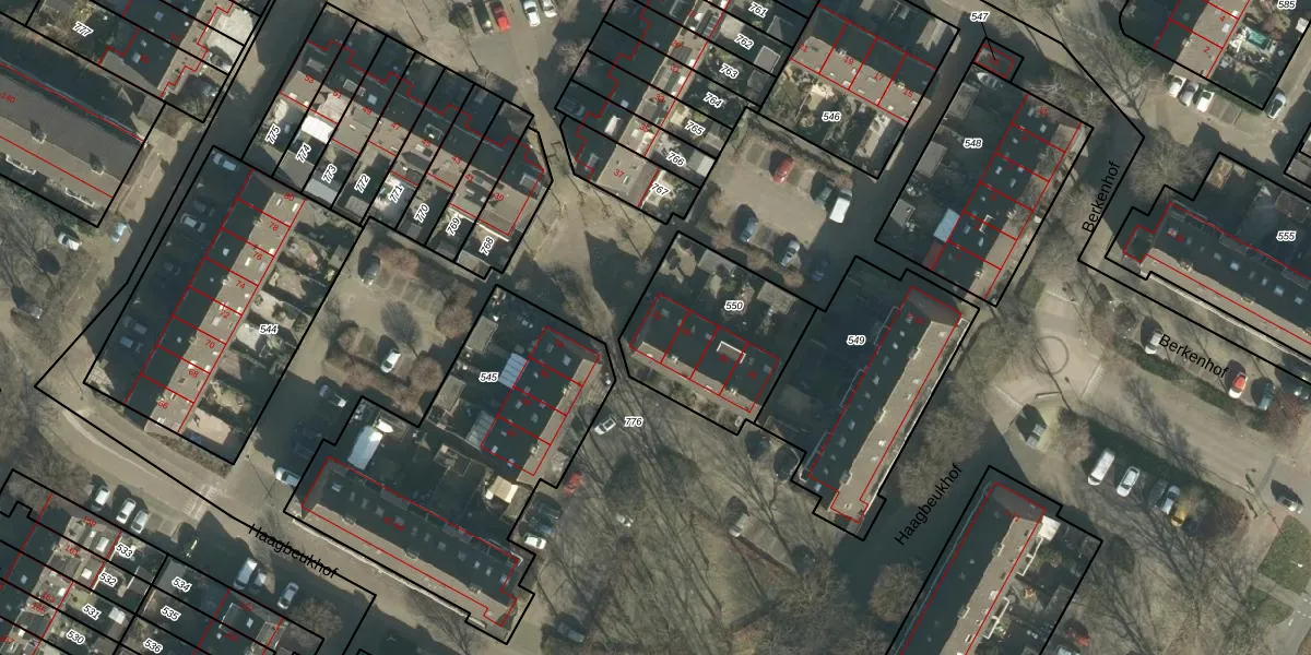 Het perceel waarop Haagbeukhof 32 staat heeft een oppervlakte van 545 m². Dit is een groot perceel. De perceeloppervlakte wordt geregistreerd door het Kadaster. Gedetailleerde informatie over de maten van dit perceel kunt u vinden in het rapport Kadastrale kaart met maatvoering van Haagbeukhof 32.