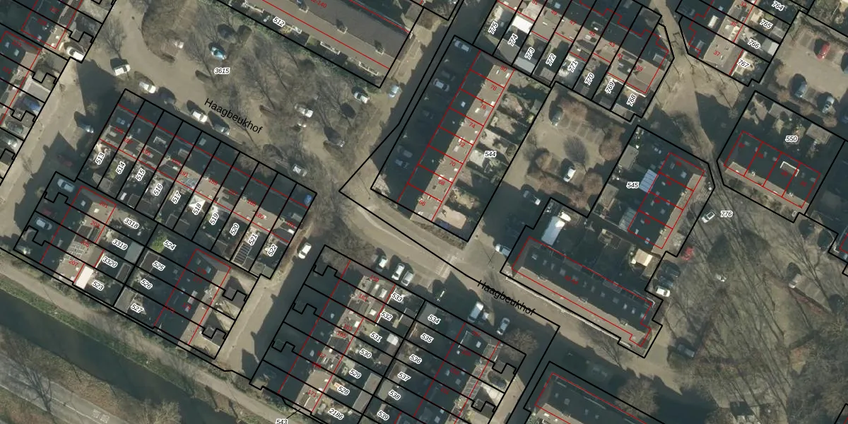Het perceel waarop Haagbeukhof 66 staat heeft een oppervlakte van 1076 m². Dit is een zeer groot perceel. De perceeloppervlakte wordt geregistreerd door het Kadaster. Gedetailleerde informatie over de maten van dit perceel kunt u vinden in het rapport Kadastrale kaart met maatvoering van Haagbeukhof 66.